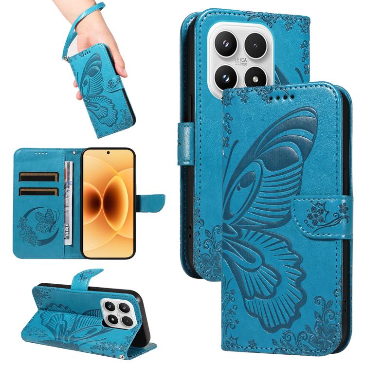 For Xiaomi 17 Swallowtail Butterfly Embossed Leather Phone Case(Blue)