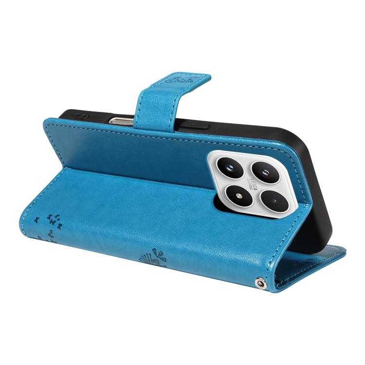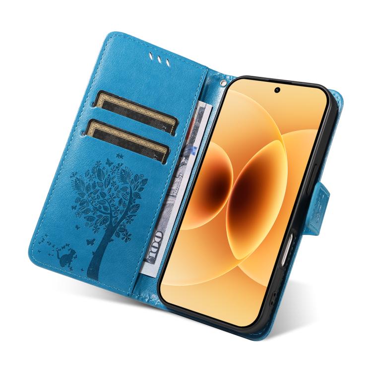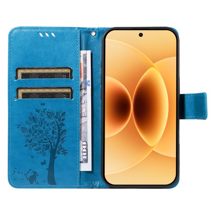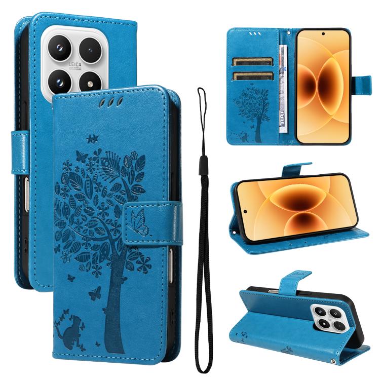 For Xiaomi 17 Tree & Cat Embossed Pattern Flip Leather Phone Case(Blue)