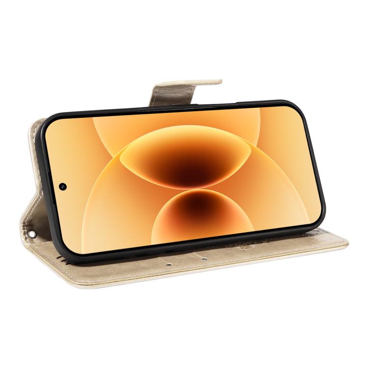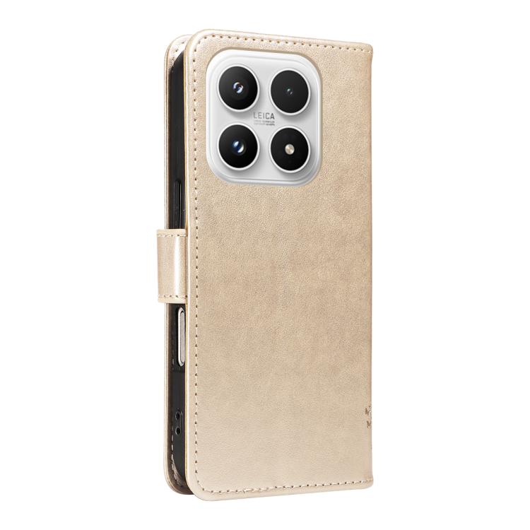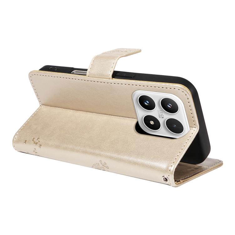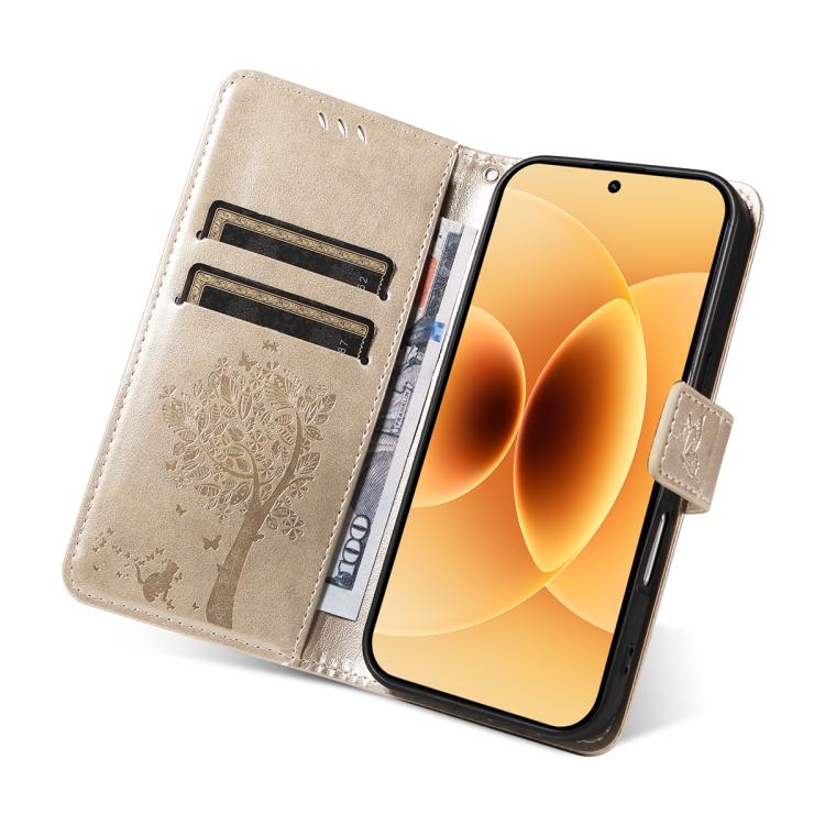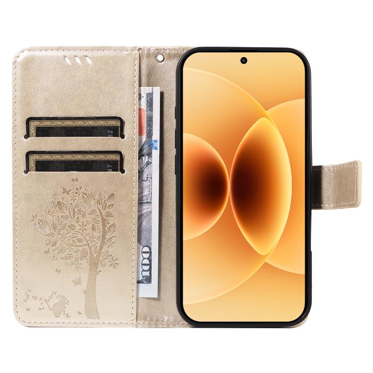 For Xiaomi 17 Tree & Cat Embossed Pattern Flip Leather Phone Case(Gold)