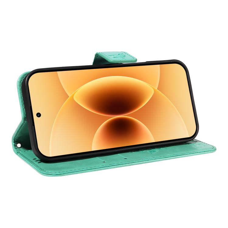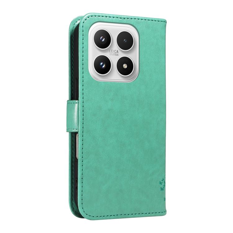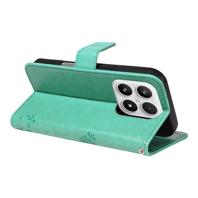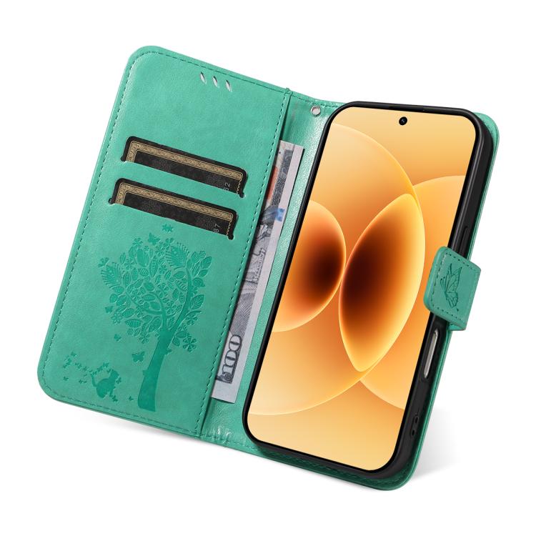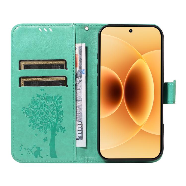 For Xiaomi 17 Tree & Cat Embossed Pattern Flip Leather Phone Case(Green)