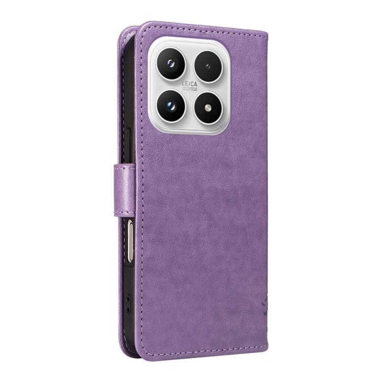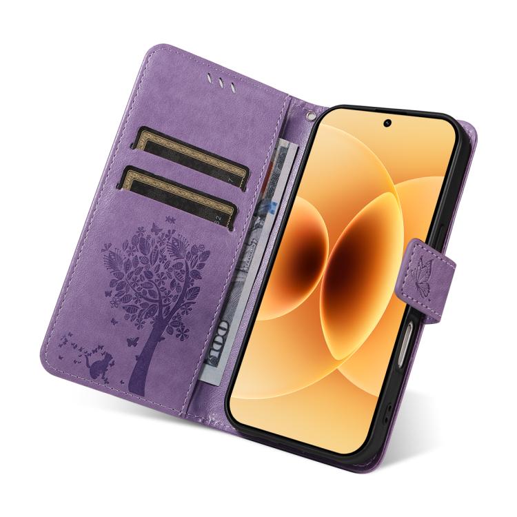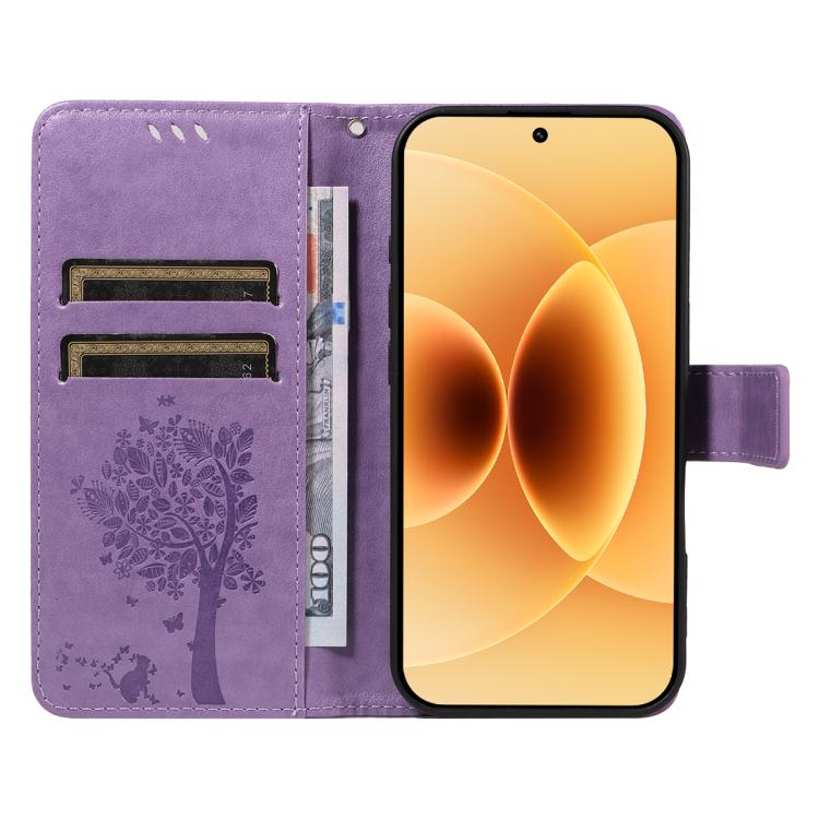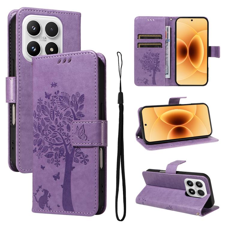 For Xiaomi 17 Tree & Cat Embossed Pattern Flip Leather Phone Case(Light Purple)