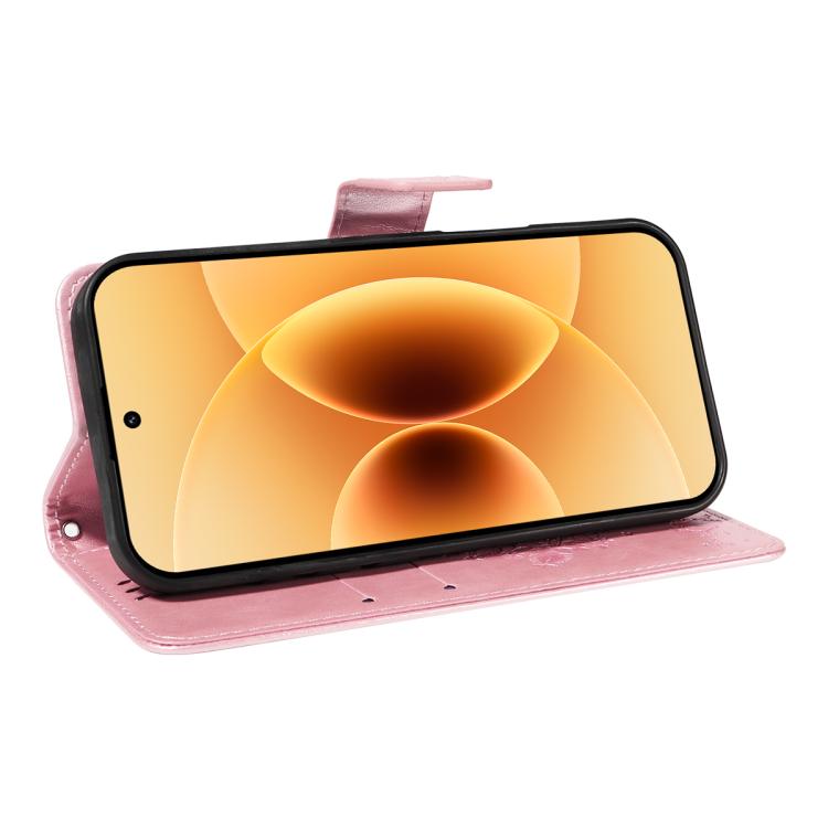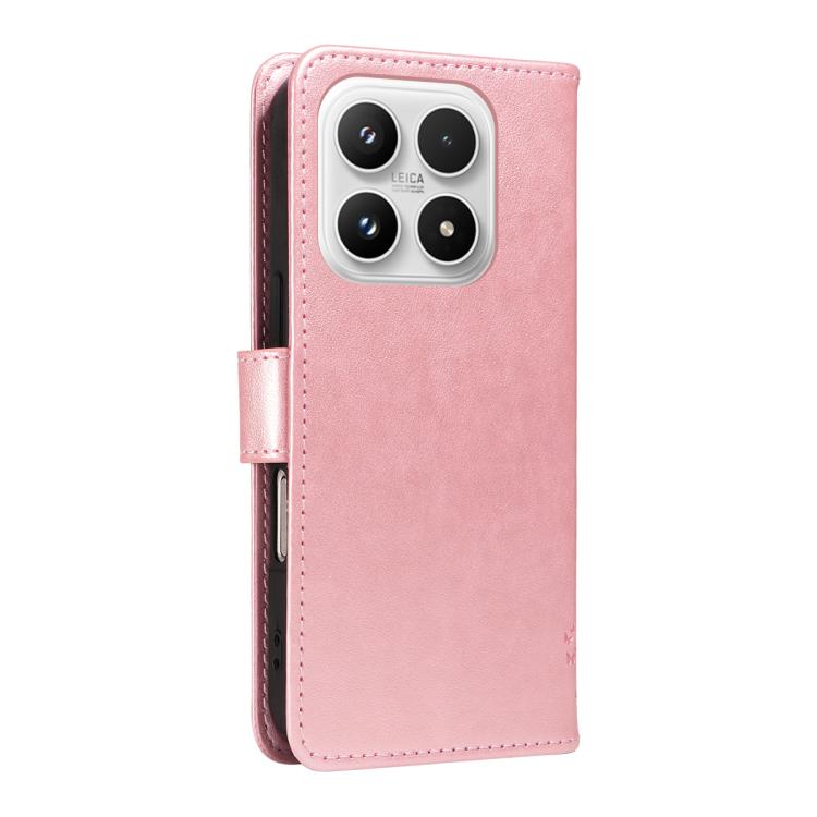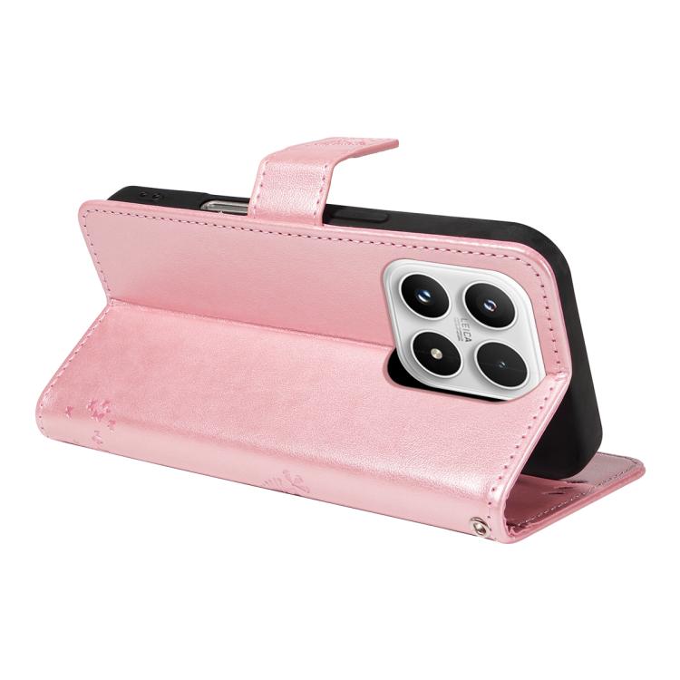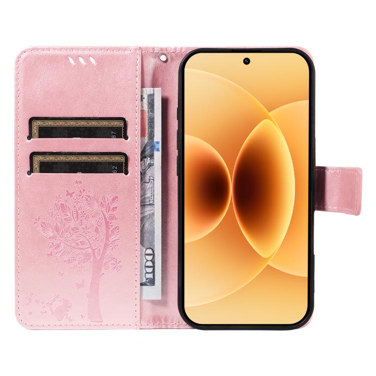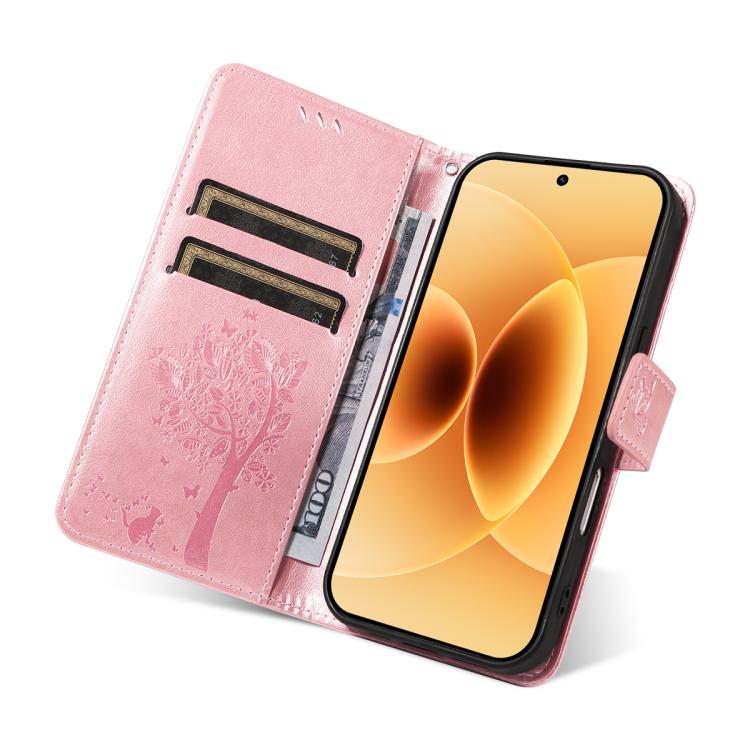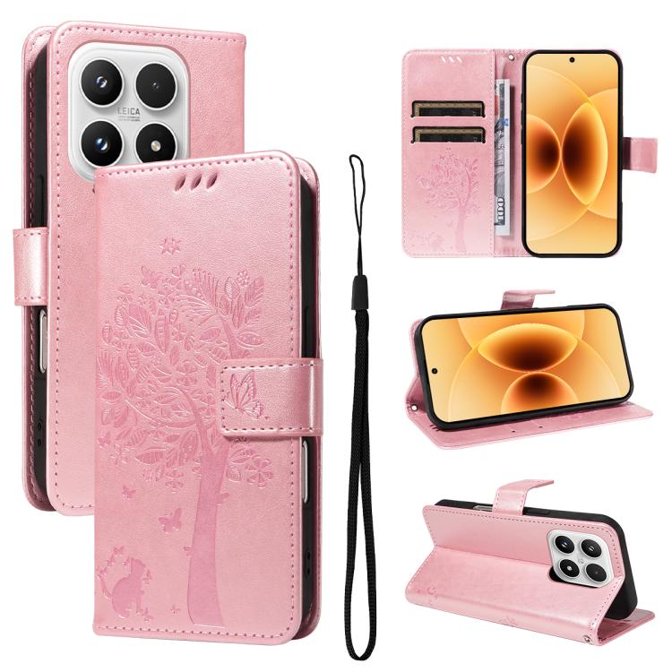 For Xiaomi 17 Tree & Cat Embossed Pattern Flip Leather Phone Case(Rose Gold)