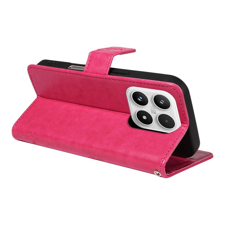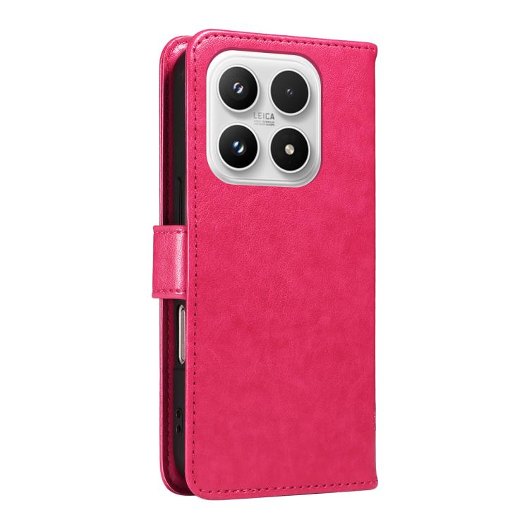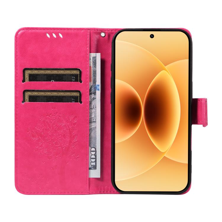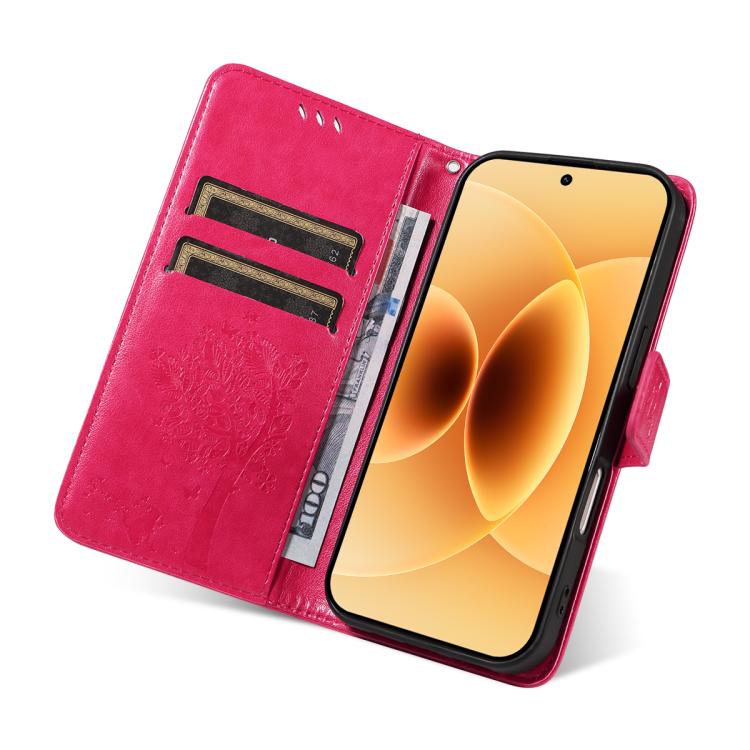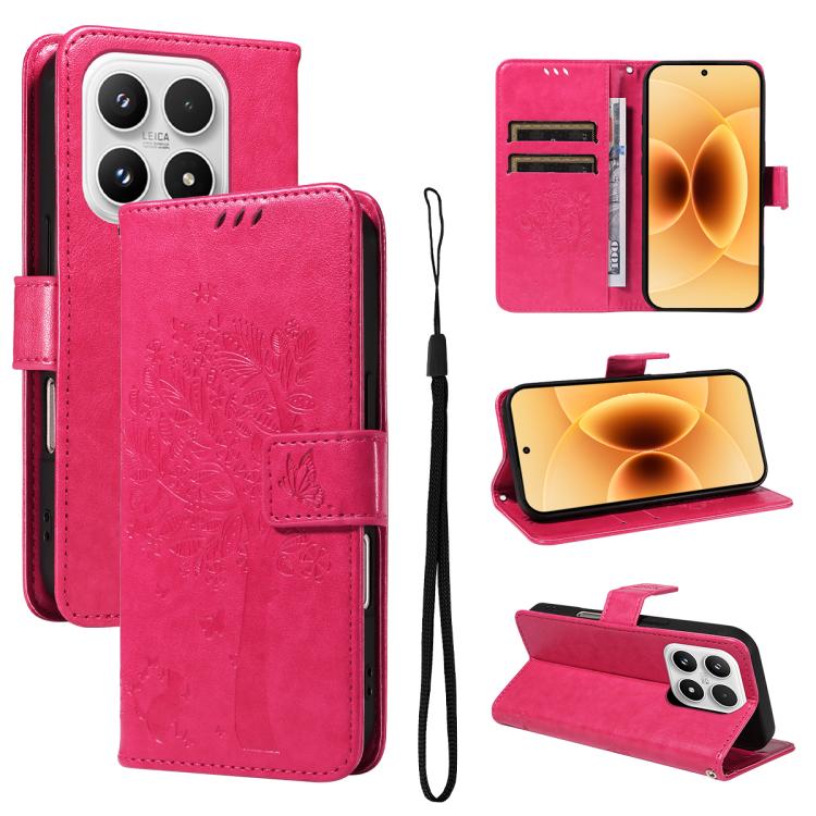 For Xiaomi 17 Tree & Cat Embossed Pattern Flip Leather Phone Case(Rose Red)