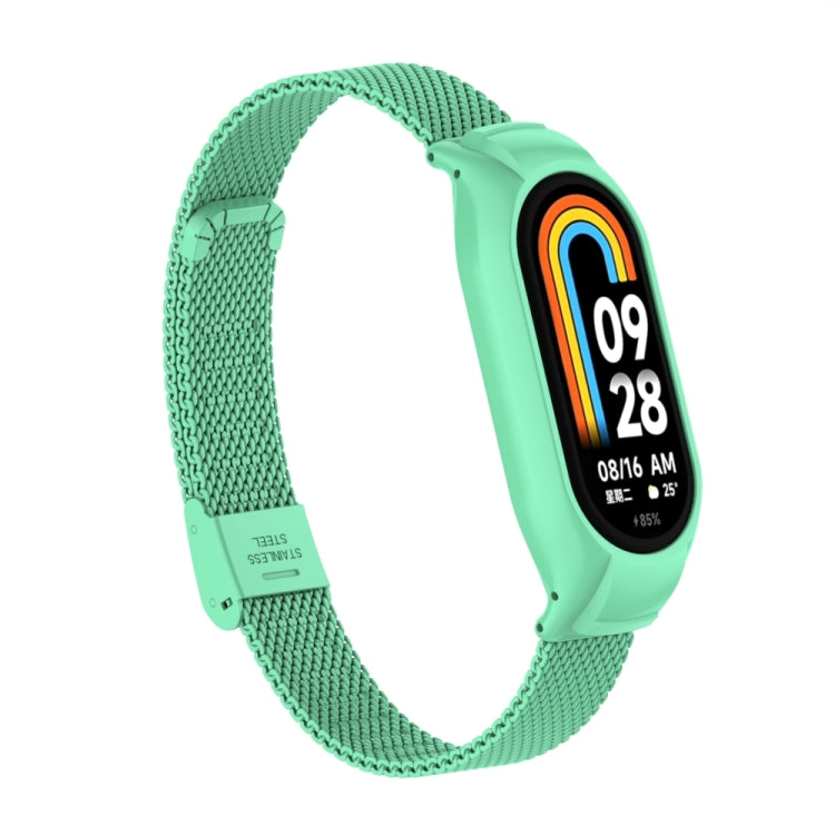 For Xiaomi Mi Band 8 Integrated Metal Case + Steel Mesh Buckle Watch Band(Blue Sea)