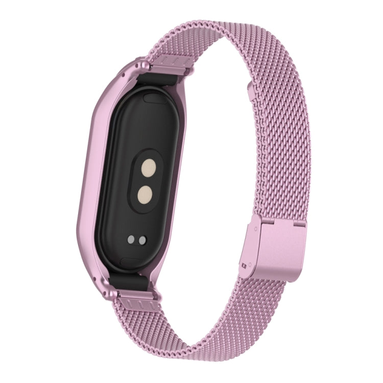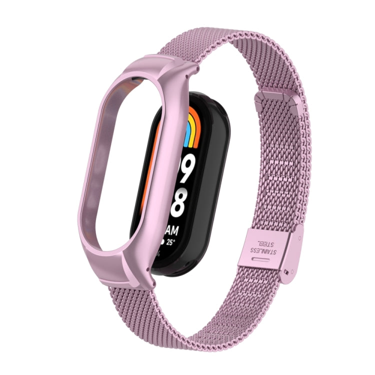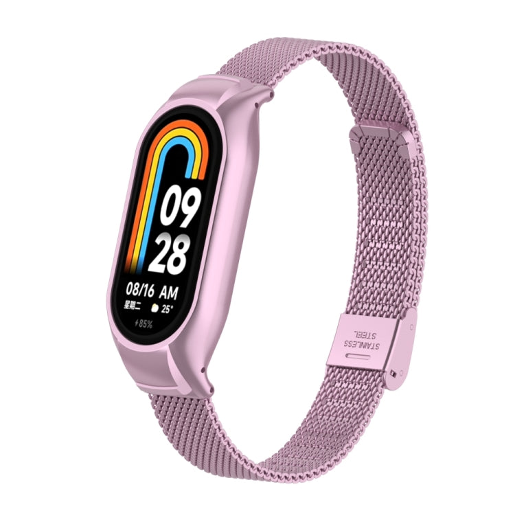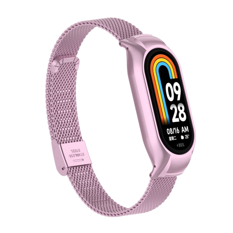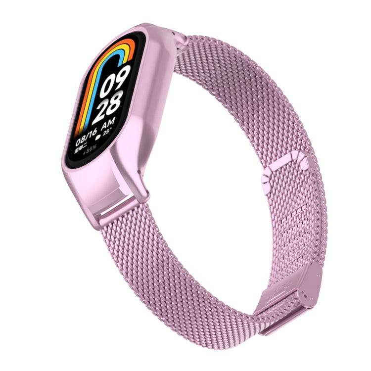 For Xiaomi Mi Band 8 Integrated Metal Case + Steel Mesh Buckle Watch Band(Rose Pink)
