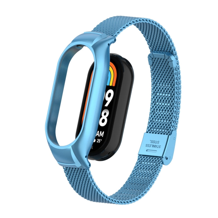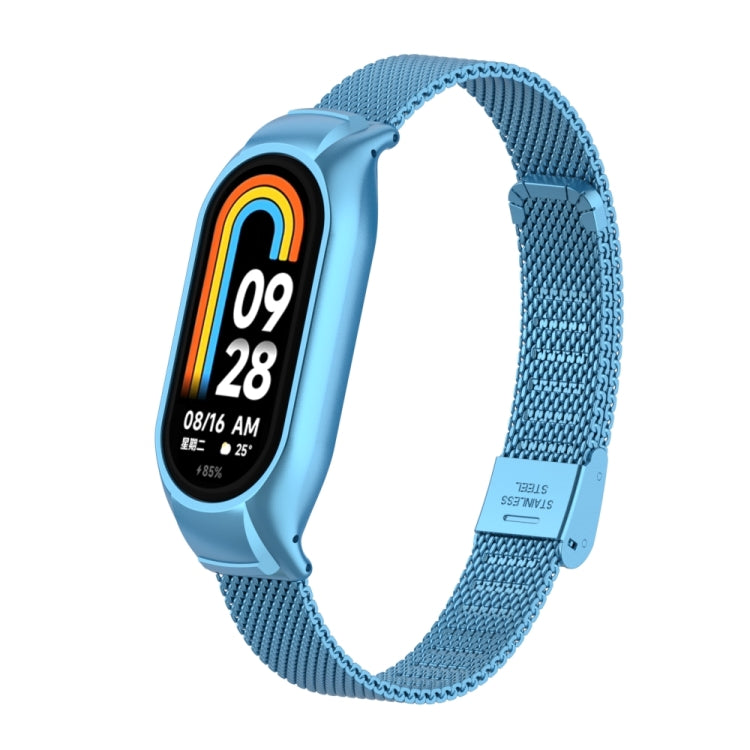 For Xiaomi Mi Band 8 Integrated Metal Case + Steel Mesh Buckle Watch Band(Sky Blue)