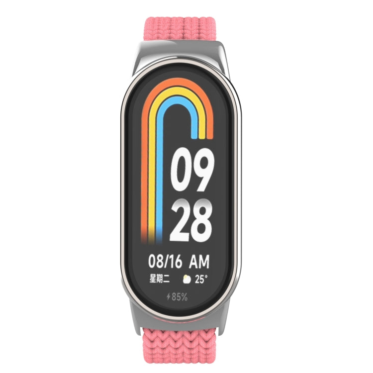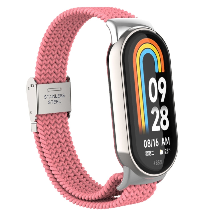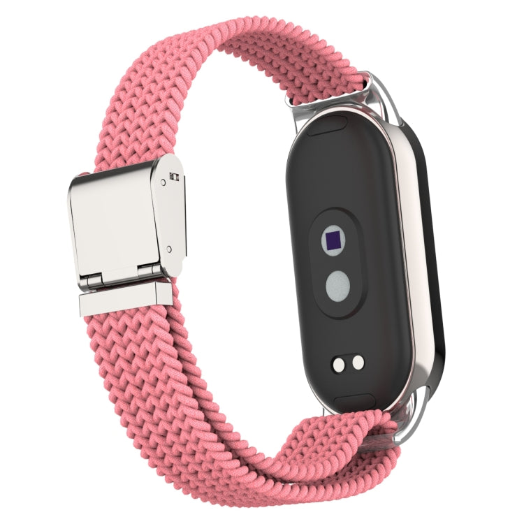 For Xiaomi Mi Band 8 Metal Head + Adjustable Nylon Braided Steel Buckle Watch Band(Pink)