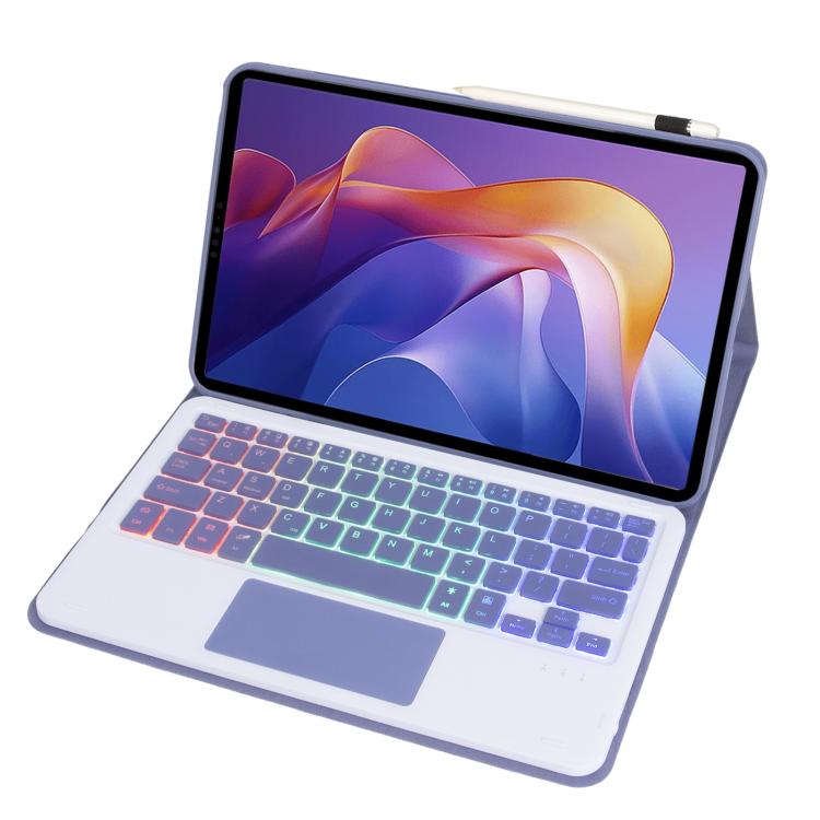 For Xiaomi Redmi Pad 2 2025 A0N15-AS Ultra-thin Detachable Backlight Bluetooth Keyboard Leather Tablet Case with Touchpad(Lavender White)