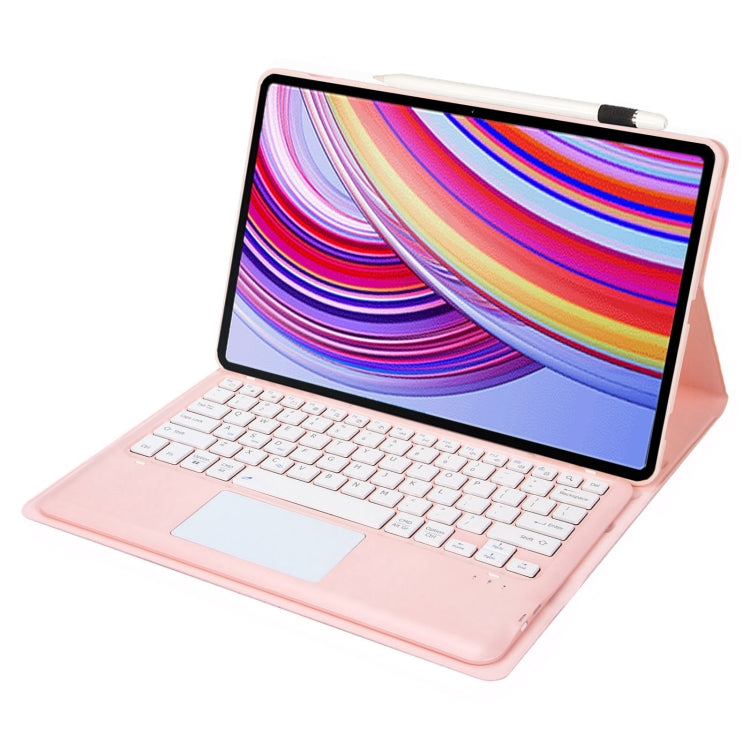 For Xiaomi Redmi Pad Pro 12.1 A0N11-A Detachable Bluetooth Keyboard TPU Lambskin Leather Tablet Case with Touchpad(Pink White)