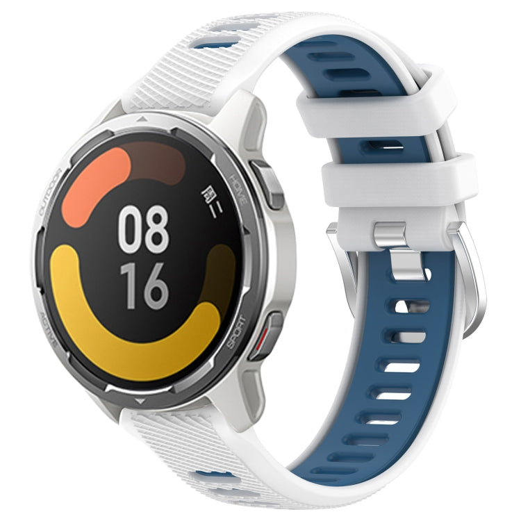 For Xiaomi Watch S1 Active 22mm Sports Two-Color Steel Buckle Silicone Watch Band(White+Blue)