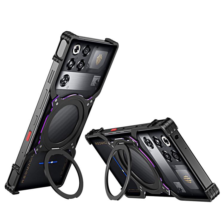 For ZTE nubia Red Magic 11 Pro / 11 Pro+ Mechanical Arm Borderless MagSafe Holder Metal Phone Case(Black Purple)