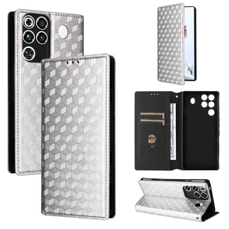 For ZTE nubia RedMagic 11 Pro+ Cubic Grid Texture Flip Leather Phone Case(Silver)