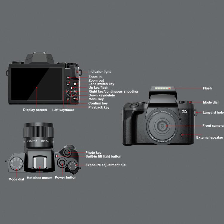 FSD-W5 4-Inch Touch Screen WiFi Transmission 4K HD Digital Camera Student Photo SLR(Black)