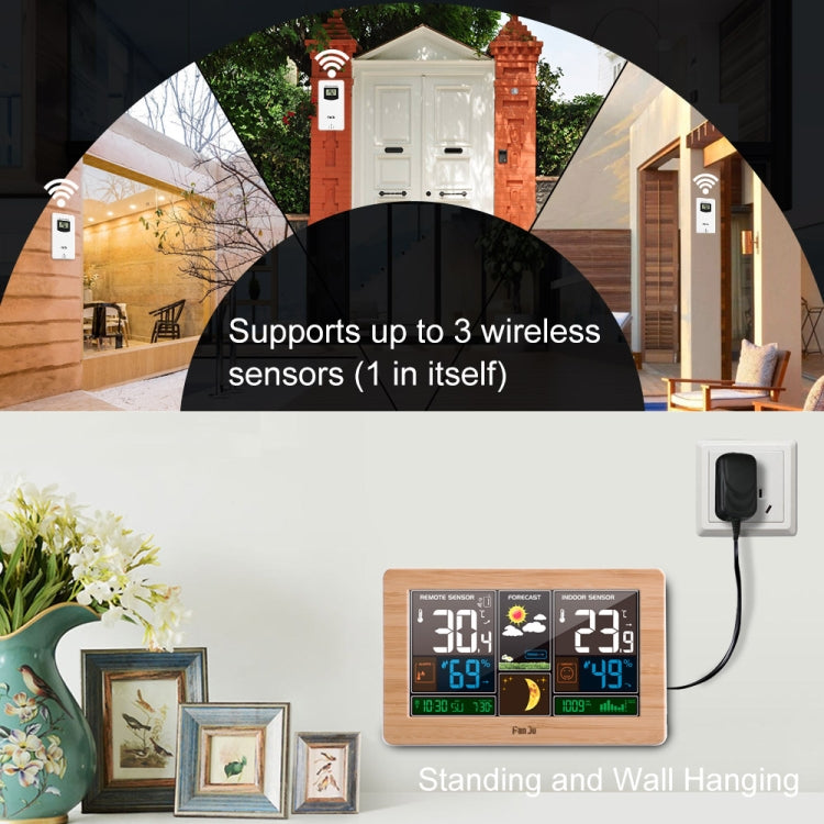 FUJU Wood Grain Weather Station Digital Clock Alarm Thermometer Hygrometer(EU Plug Yellow)