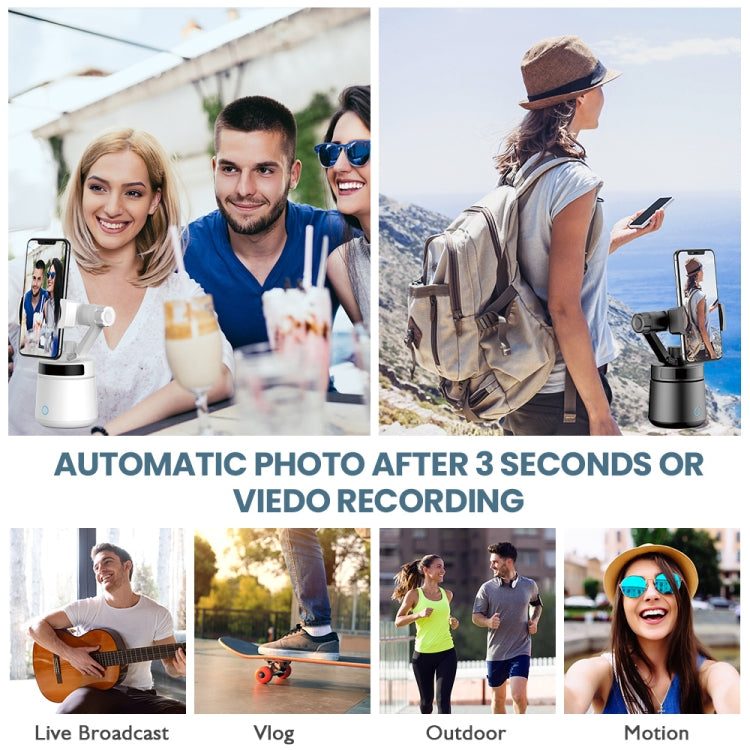 GK01 360 Degree Rotation Intelligent Tracking Pan Tilt Following Shot Tripod Head Holder (White)