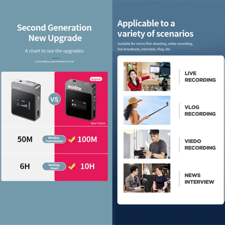 Godox MoveLink II M1 Wireless Lavalier Microphone System with Transmitters and Receiver for DSLR Cameras and Camcorders (White)