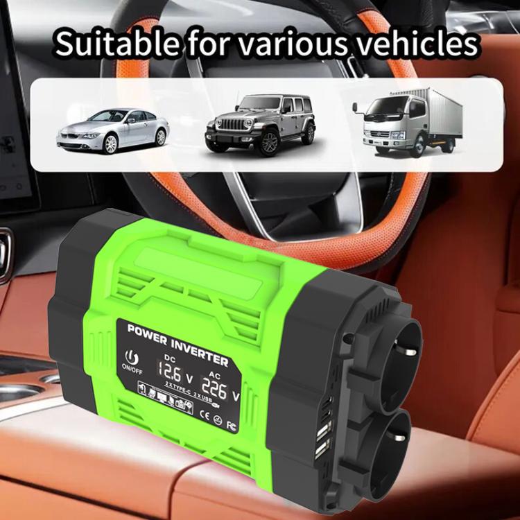 Gurxun Modified Wave Inverter With 18W Solar Panel + 30A Controller Dual Socket + 2 USB + 2 Type-C Ports, Spec: 300W EU Plug 12V To 220V
