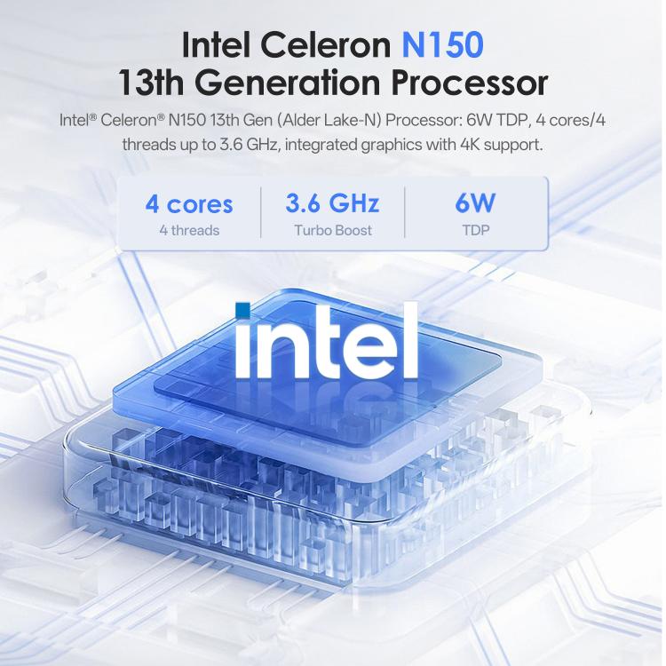 GXMO N15 Windows 11 Mini PC, 16GB+512GB, Intel ADL-N N150 4-Core Processor(US Plug)