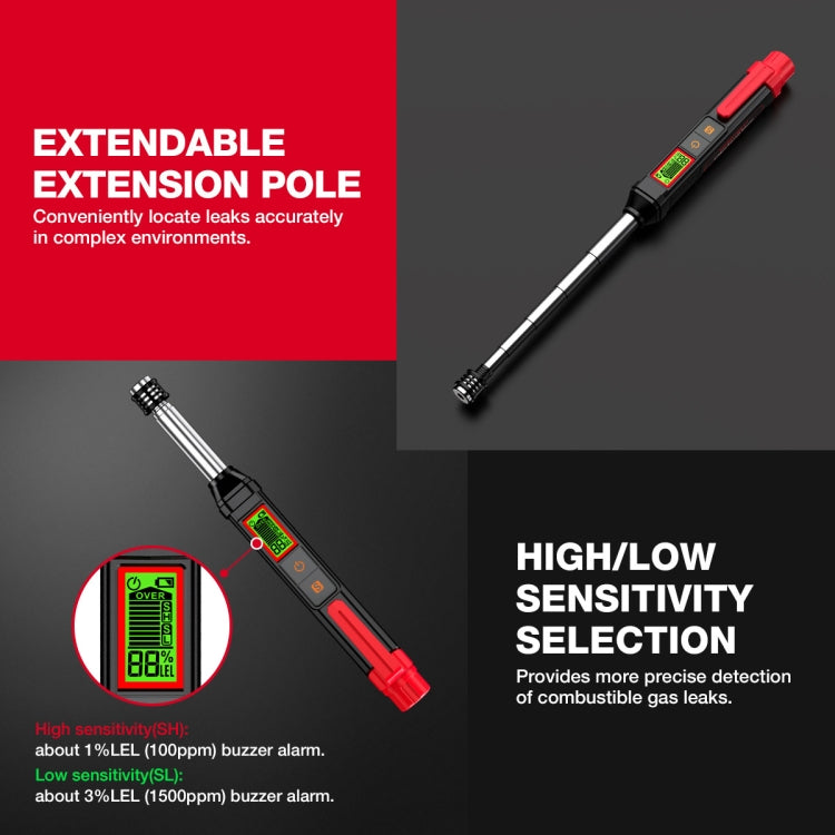 2. It is convenient for users to safely detect various combustible gases, such as: methane, carbon monoxide, gasoline, ethylene oxide, etc.