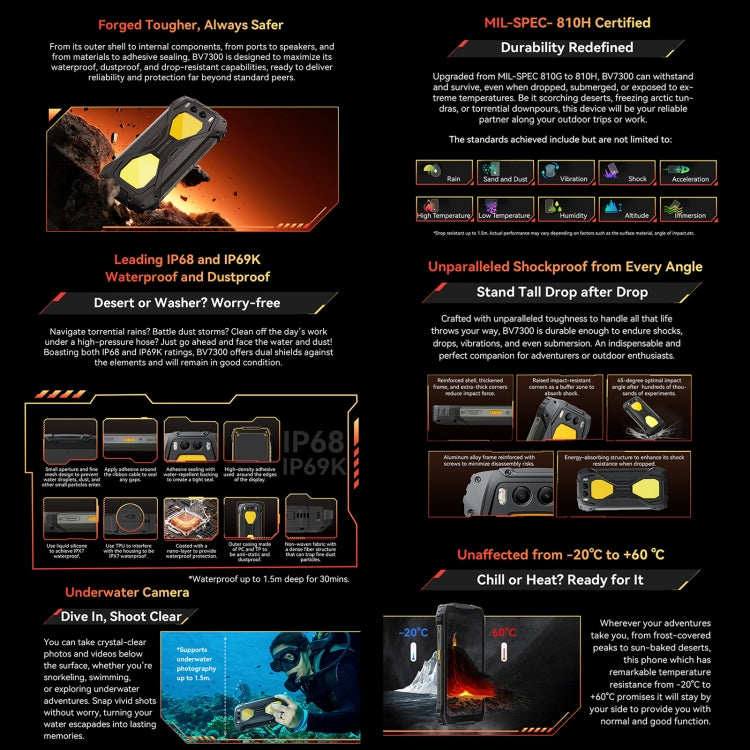 14. Protection: IP68/IP69K/MIL-STD-810H Waterproof Dustproof Shockproof