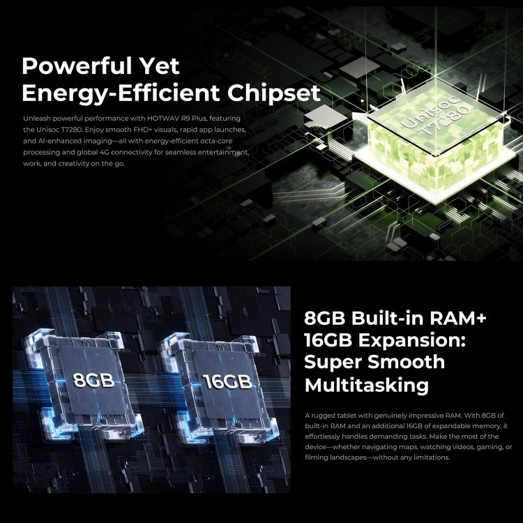 [HK Warehouse] HOTWAV Tab R9 Plus IP68/IP69K Rugged Tablet, 8GB+512GB, 11 inch Android 14 Unisoc T7280 Octa Core 4G Network, Global Version with Google Play, EU Plug (Black)