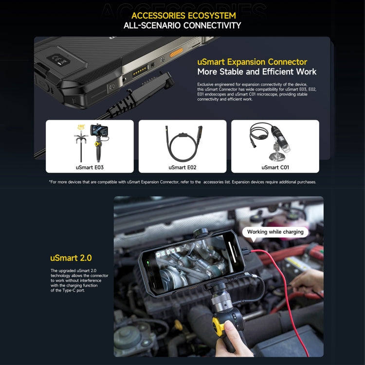 7. Expansion Connector 2.0: uSmart Expansion Connector, supporting uSmart series accessories. And the type-C port allows charging while the uSmart Connector working.
