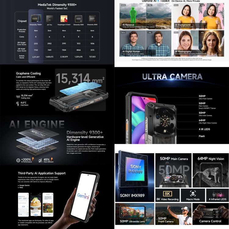 [HK Warehouse] Ulefone Armor 28 Ultra Rugged Phone, 16GB+1TB, Night Vision, 10600mAh, 6.67 inch Android 14 MediaTek Dimensity 9300+ Octa Core, Network: 5G, NFC (Black)