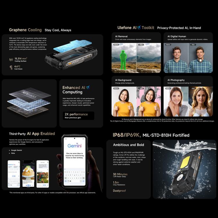 [HK Warehouse] Ulefone Armor 29 Pro Rugged Phone, 16GB+512GB, Night Vision, 6.67 inch + 1.04 inch Android 15 MediaTek Dimensity 7400 Octa Core, Network: 5G, OTG, NFC (Black)