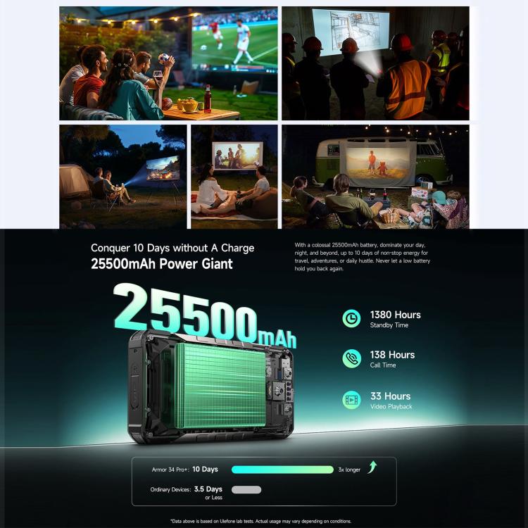 [HK Warehouse] Ulefone Armor 34 Pro+ Projector, 16GB+512GB, Night Vision, IP68/IP69K Rugged Phone, 6.95 inch Android 15 MediaTek Dimensity 7400X Octa Core, Network: 5G, NFC, OTG (Black)