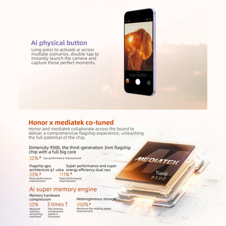 1. CPU model: Dimensity 9500, octa-core, 1 x C1-Ultra 4.21GHz+3 x C1-Premium 3.5GHz+4 x C1-Pro 2.7GHz