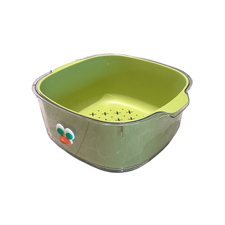 Household Dual Layer Thickened Cartoon Draining Basket Multifunctional Kitchen Dishwashing Hamper, Style: Small Green