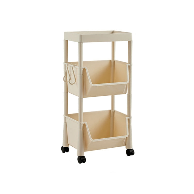 Household Movable Floor-Standing Trolley Bookcase Multifunctional Kitchen Bedroom Shelf With Wheels, Style: 3 Layer With Lid