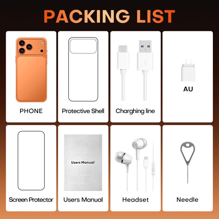 i17 Pro Max / A19, 4GB+64GB, 6.85 inch Android 8.1 MTK6762 Octa Core, Network: 4G, Dual SIM, AU Plug (Orange)