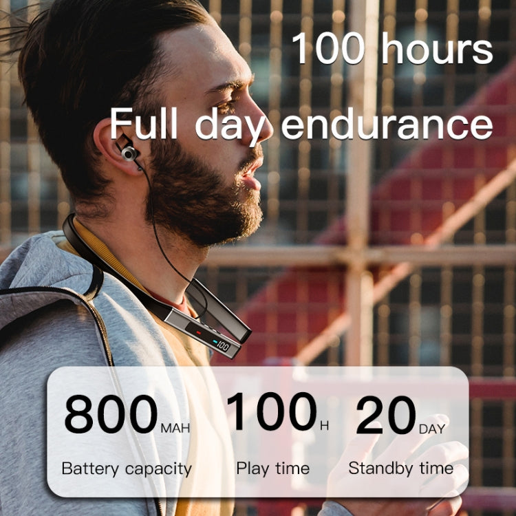k18 Wireless Bluetooth Neck-mounted Magnetic Noise Cancelling Earphone with Digital Display Function(Silver)