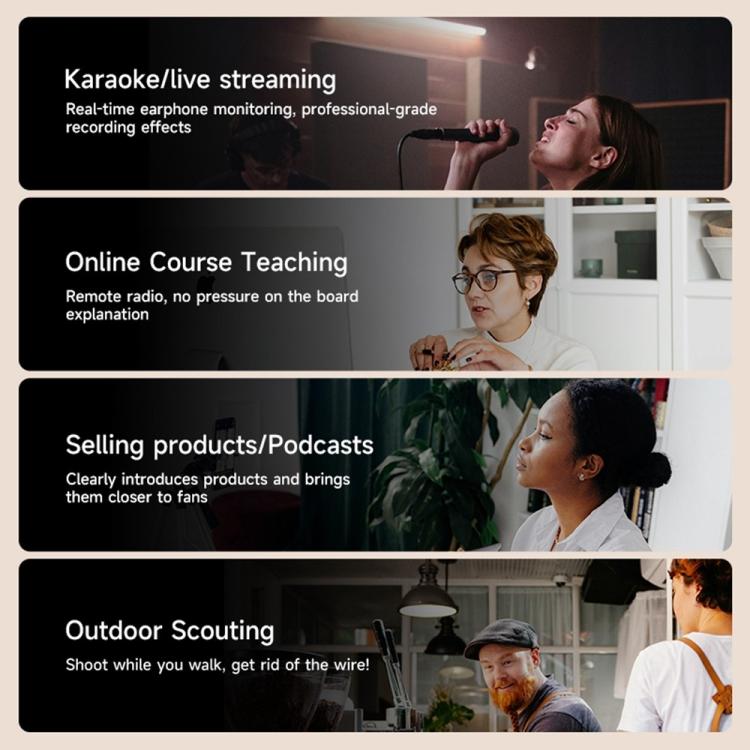 K3 Wireless Lavalier Microphone with Integrated Earphones and 2 in 1 Receiver For Live Streaming / Vlog / Interview(White)