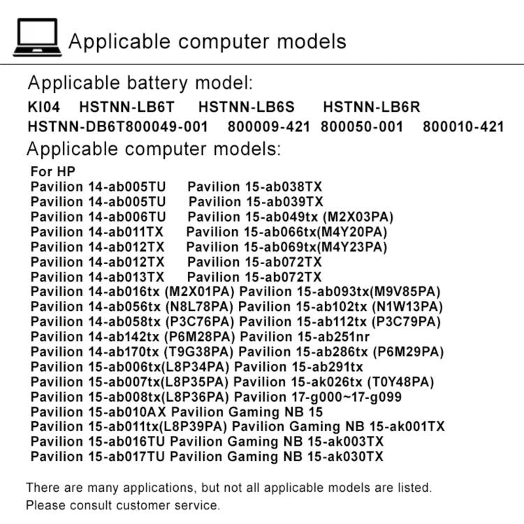 KI04XL 2200mAh Laptop Battery Replacement For HP Omen 1/2/3/4/5 PRO