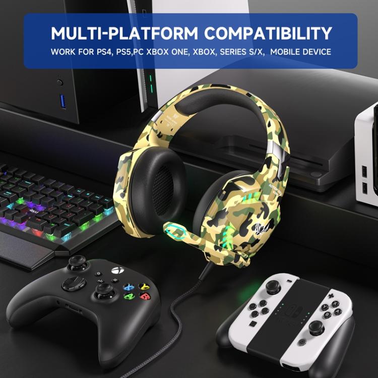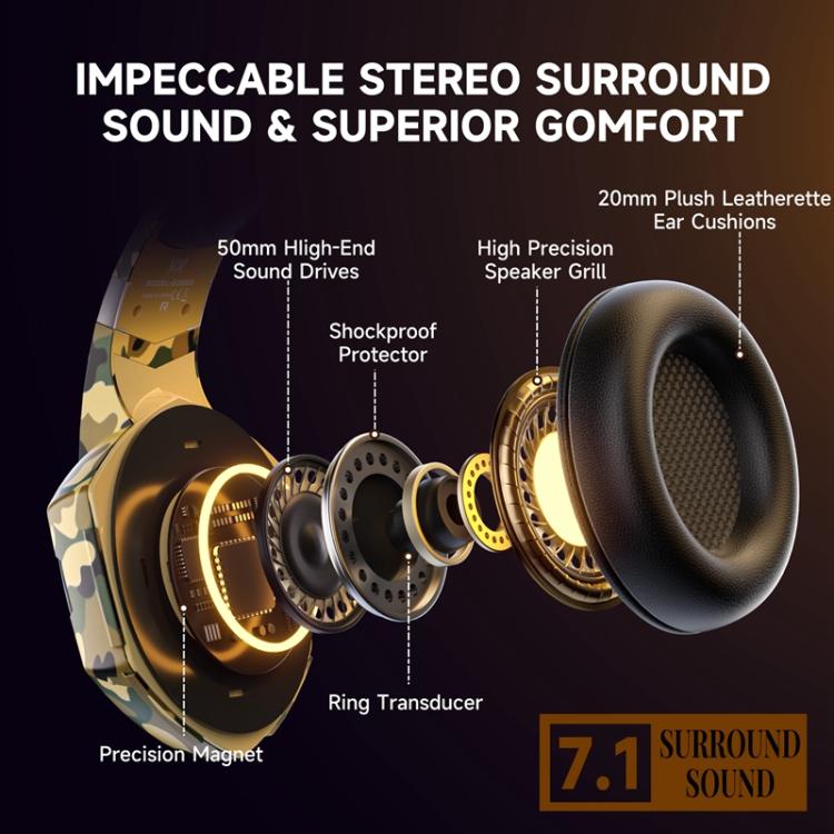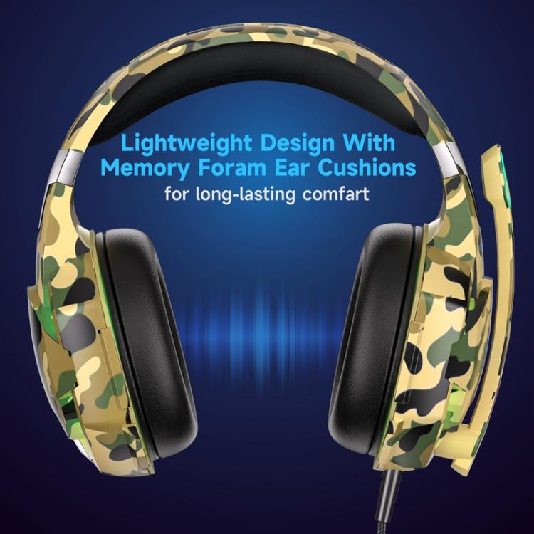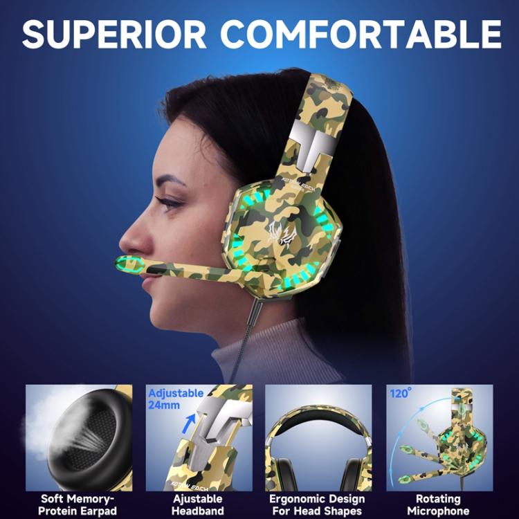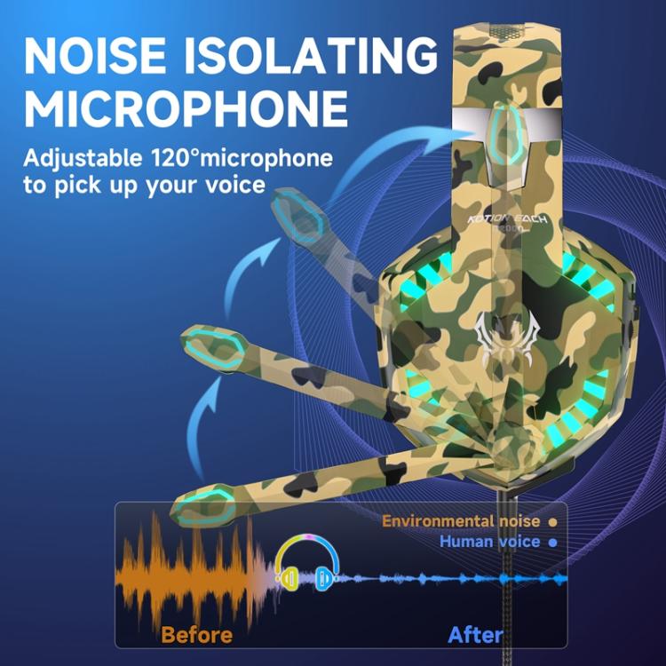 KOTION EACH G2000 Wired Game Headphones with LED Light(Camouflage Yellow)