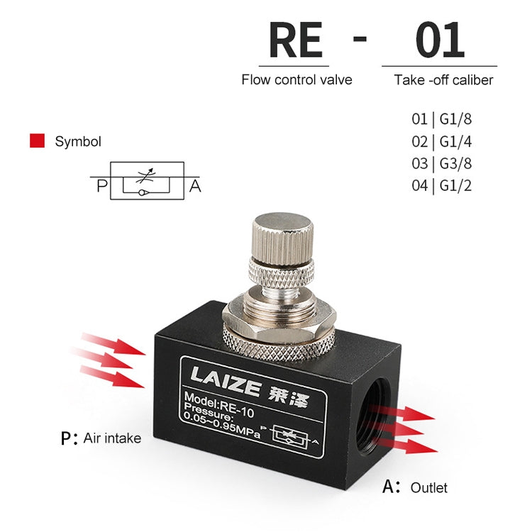 LAIZE Pneumatic Speed Regulating One-way Throttle Valve, Specification:RE-10 DN15mm