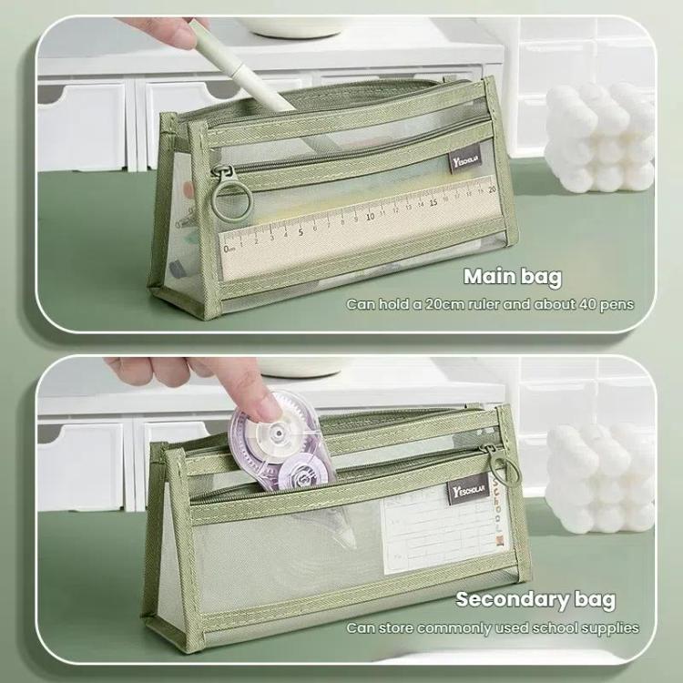 1. Exam-Approved Two-Layer Transparent Mesh Pencil Case: Dual-compartment organizer designed with sturdy mesh material for secure visibility in exam settings. Ideal for storing writing tools and school essentials while complying with test center regulations.