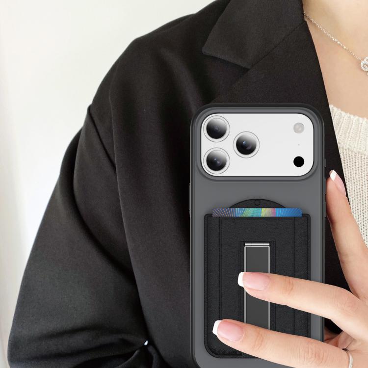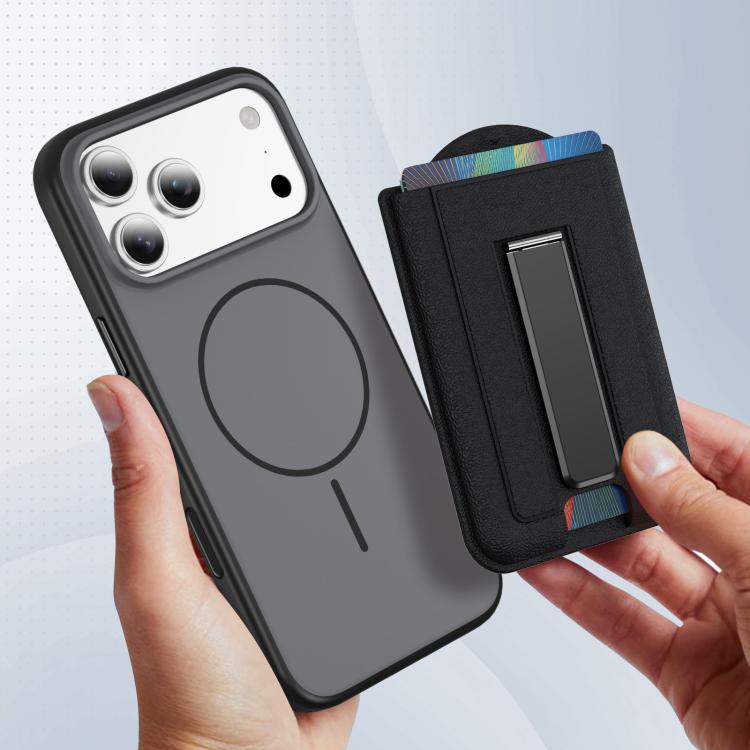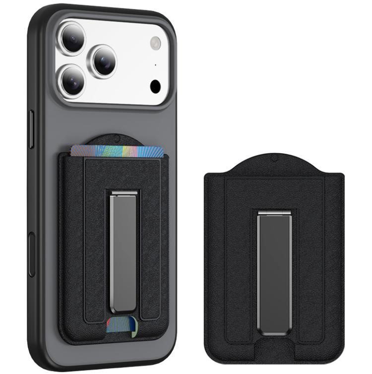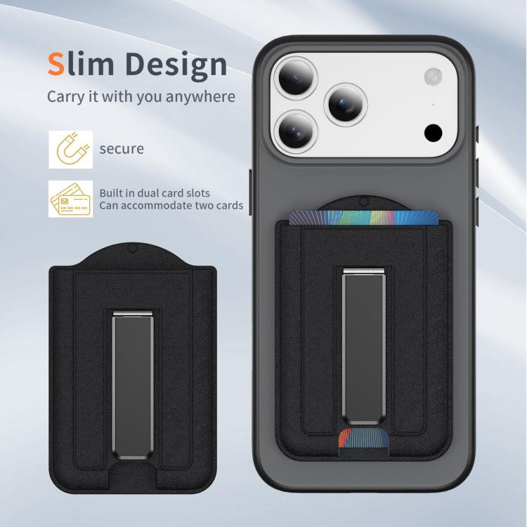 Leather Texture MagSafe Magnetic Folding Stand Phone Card Slots Holder(Black)