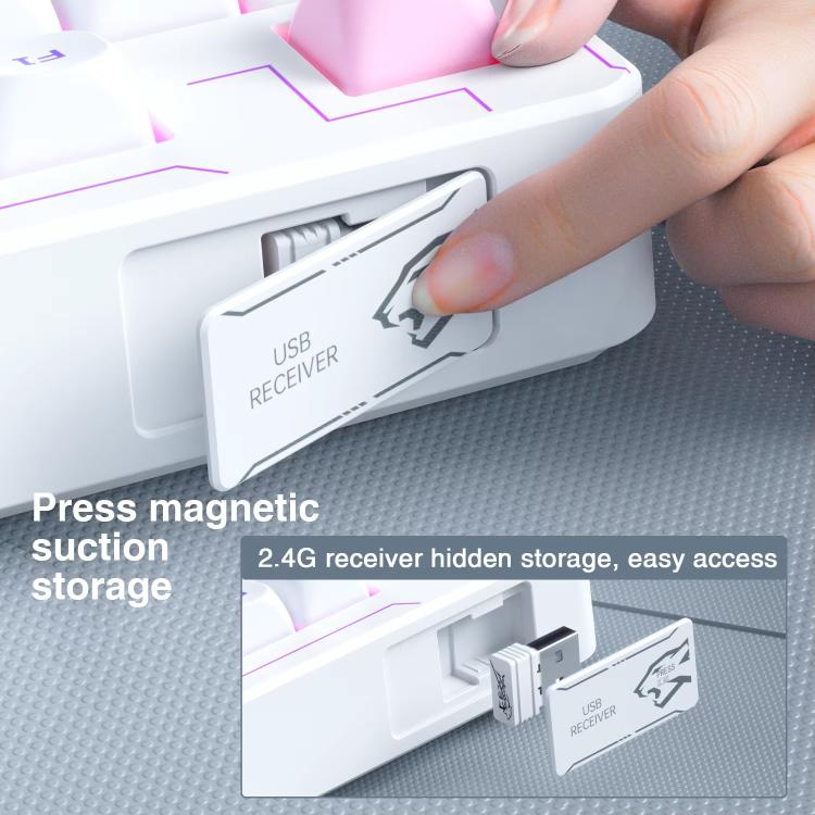 LINGBAO K98 101 Keys Triple-mode Wireless Game Keyboard, Type:Black Red-Red Rabbit Axis