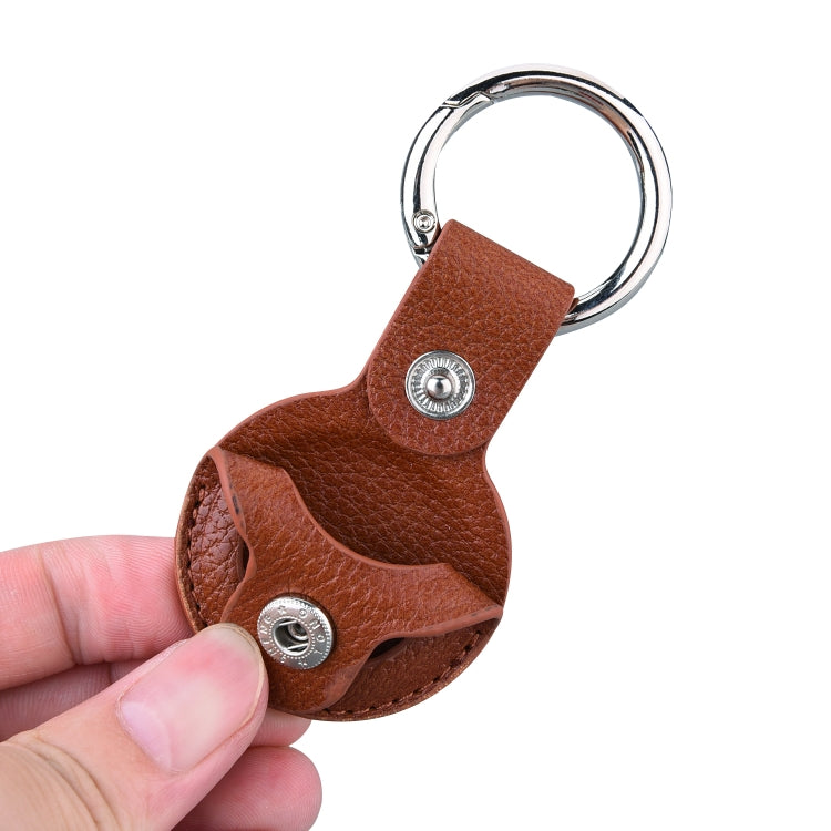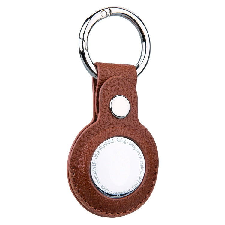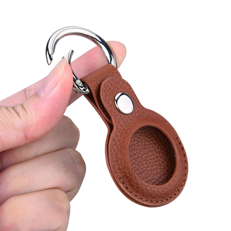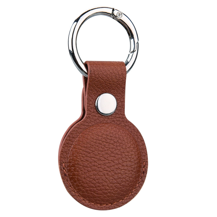 Litchi Texture Leather Protective Case with Key Ring for AirTag(Brown)