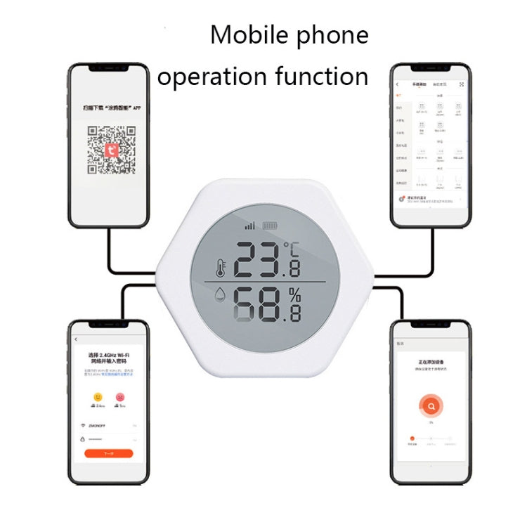 5. Function: temperature detection, humidity detection, intelligent linkage, precise detection, APP push reminder, large display screen