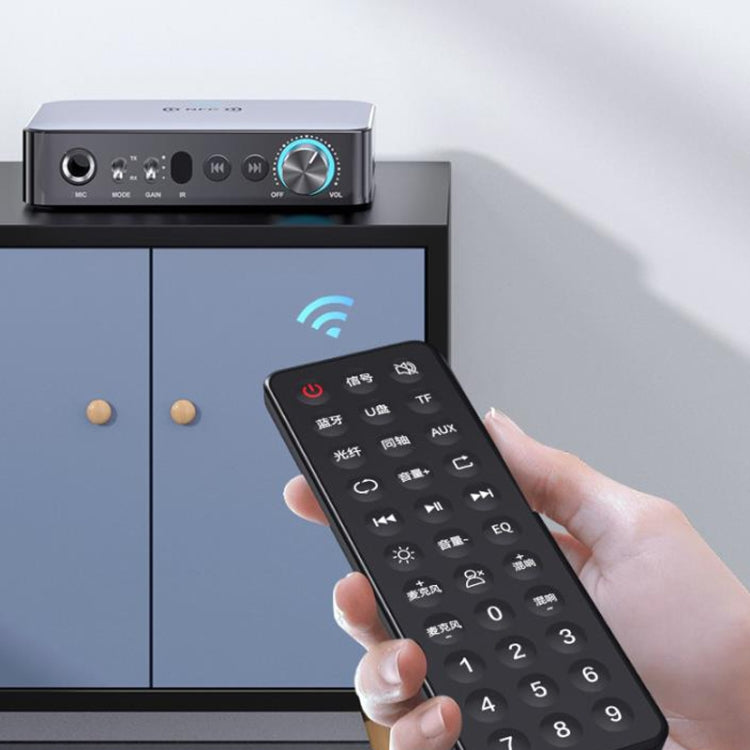 9. Support 5-8 meters infrared remote control, mode/signal/volume/up/down song/mix/microphone and other various operations