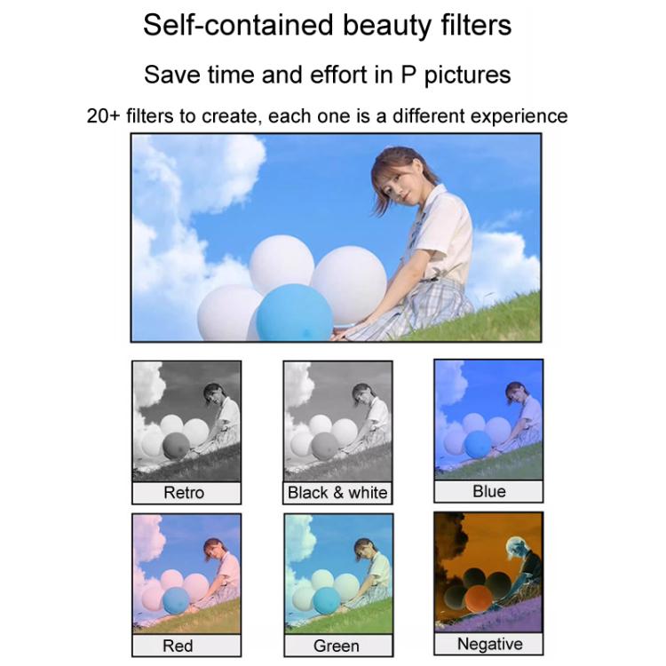 13. Shooting modes: normal video, slow video, loop video, time-lapse video, normal photo, automatic photo, continuous photo, timed photo (via shortcut keys)