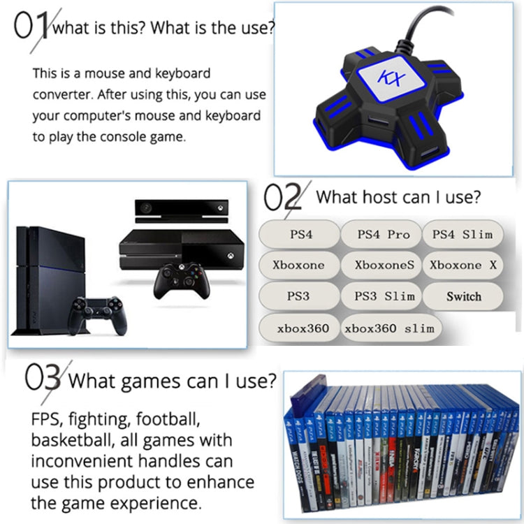 MKX401 For Switch / Xbox / PS4 / PS3 Gaming Controllor Gamepad Keyboard Mouse Adapter Converter