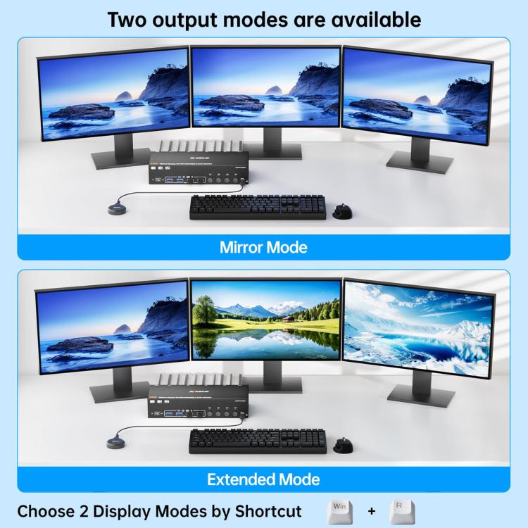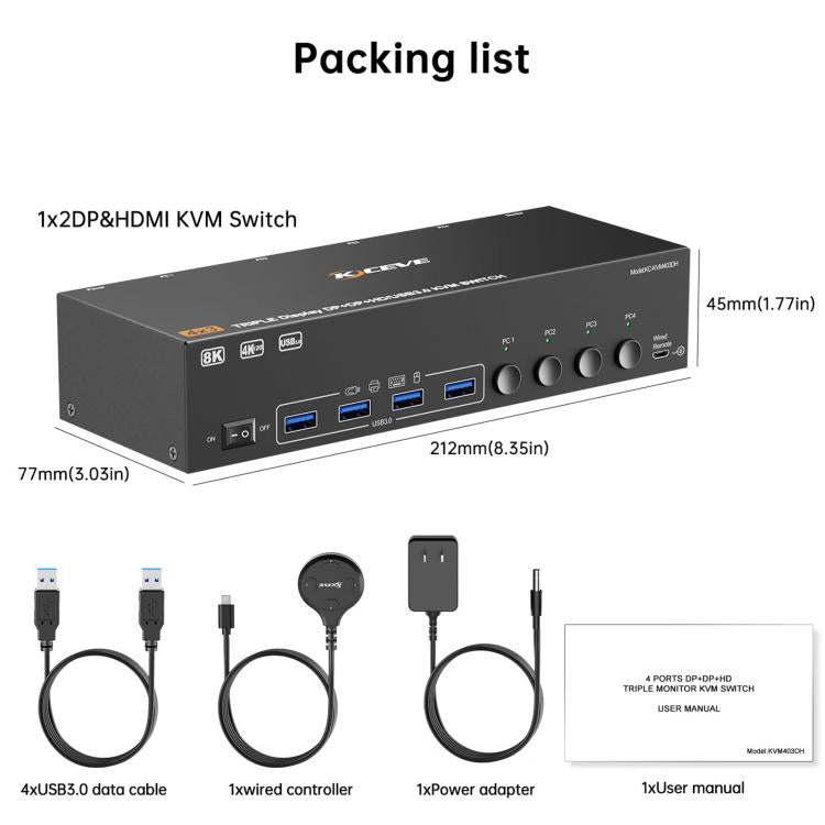 NW-KVM403DH 8K 60Hz USB3.0, DP, HDMI Ports Triple Monitor KVM Switch(US Plug)