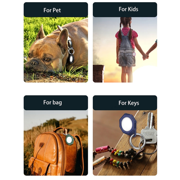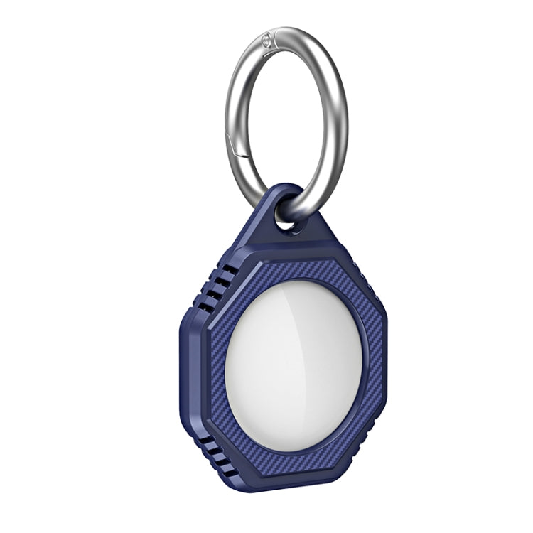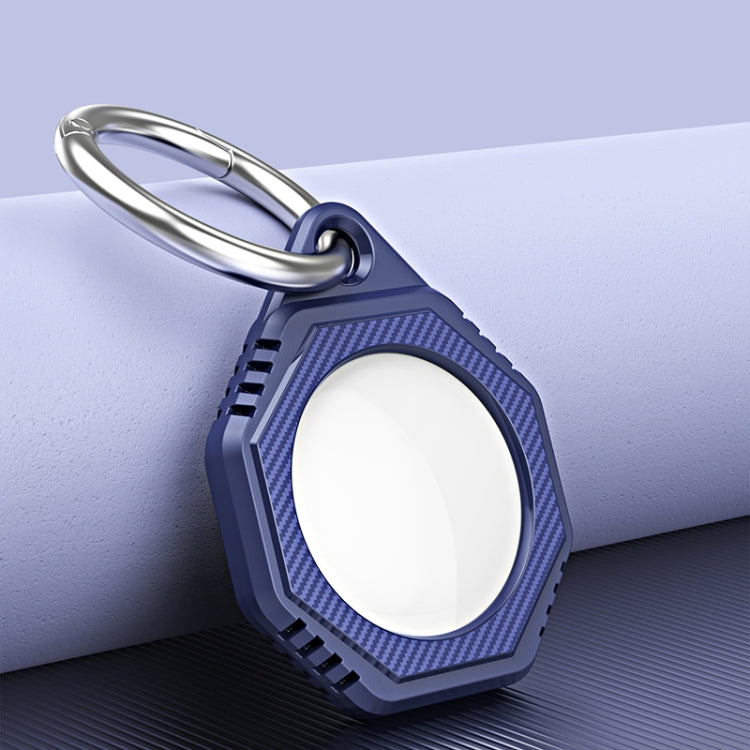 Octagonal Style Anti-scratch Shockproof Carbon Fiber TPU Case with Keychain Ring Loop For AirTag(Blue)