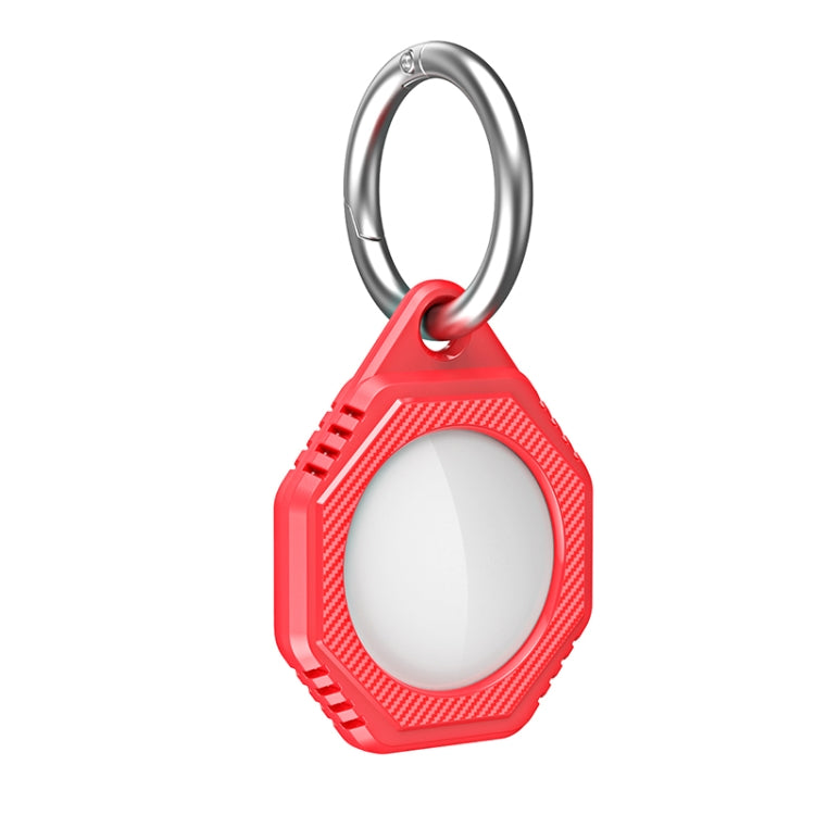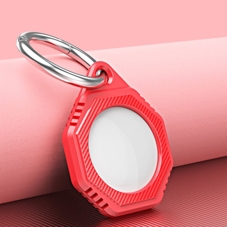 Octagonal Style Anti-scratch Shockproof Carbon Fiber TPU Case with Keychain Ring Loop For AirTag(Red)
