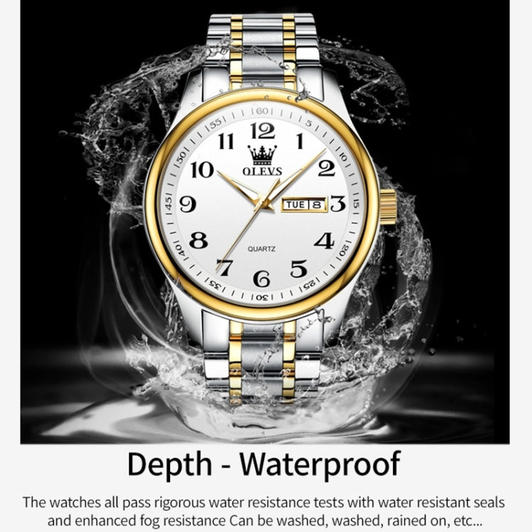 OLEVS 5567 Men Steel Strap Waterproof Quartz Watch(White + Gold)